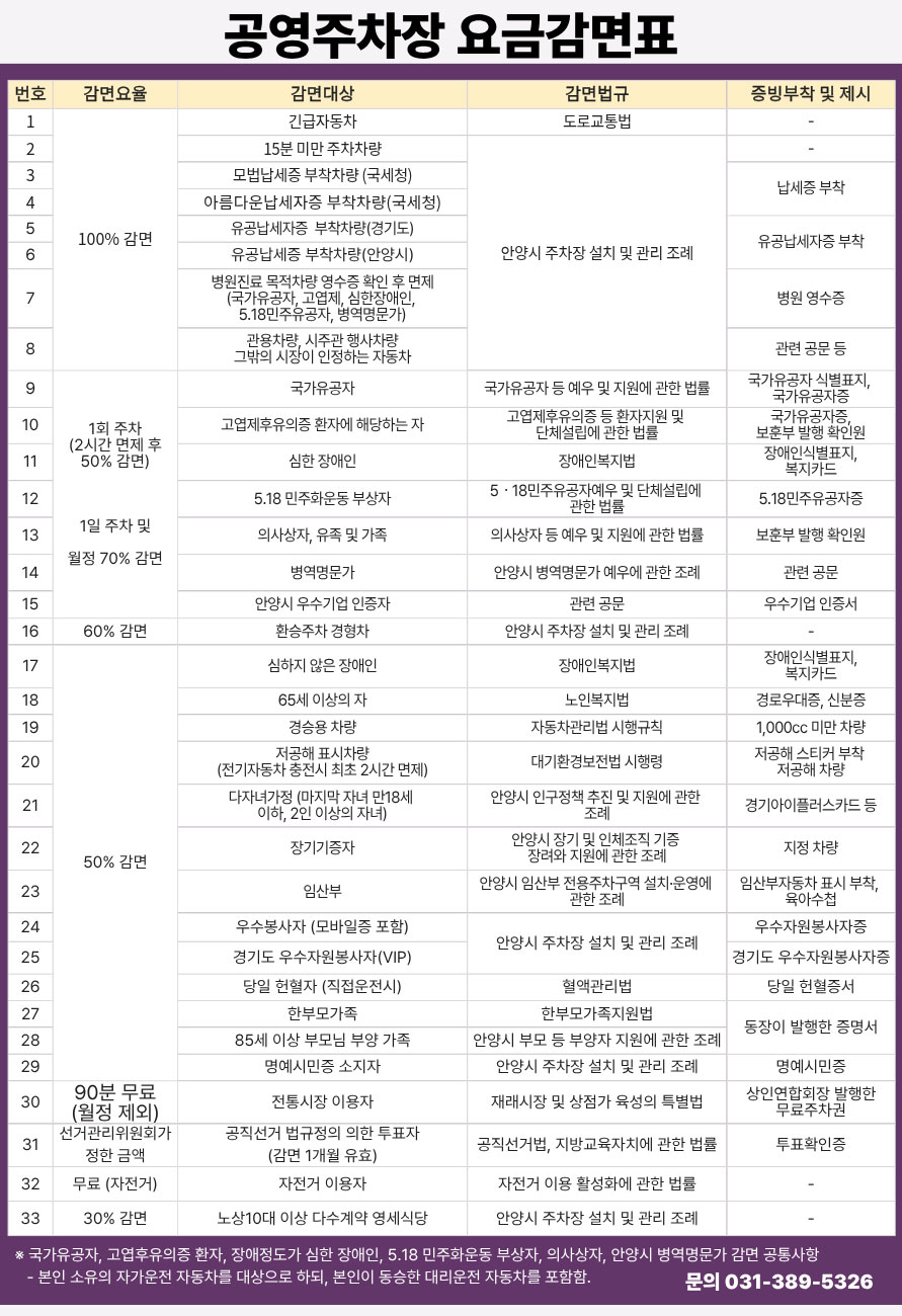 주차요금표
