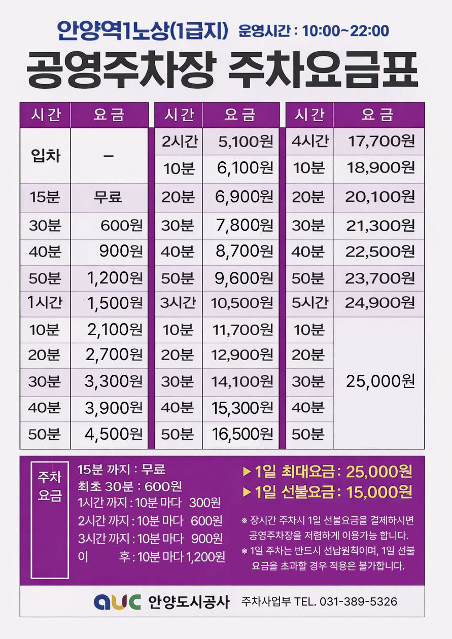 안양역1노상 주차장, 원스퀘어 임시공영주차장 이용(유료)