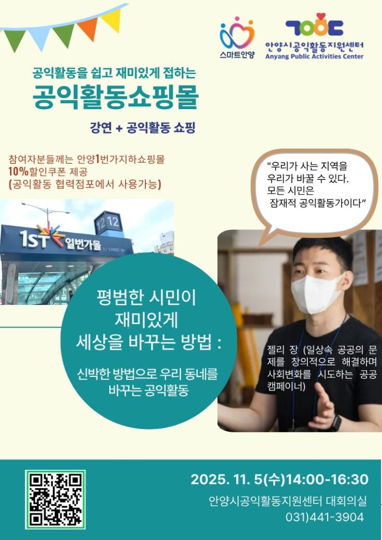 듣고 보고 선택하는"안양 공익활동 쇼핑몰"지금 바로 신청하세요. "클릭! 신청하기""QR코드 스캔 신청"
