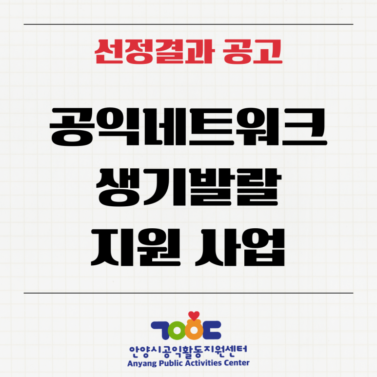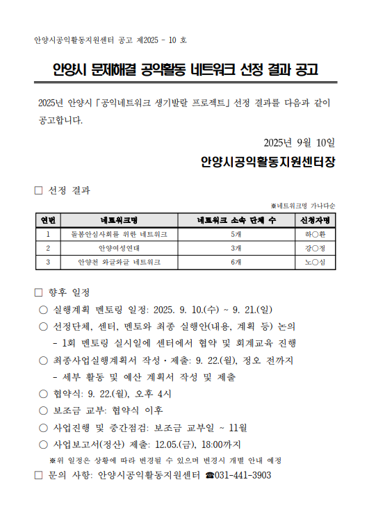[공고] 2025 안양시「공익네트워크 생기발랄 프로젝트」선정 결과