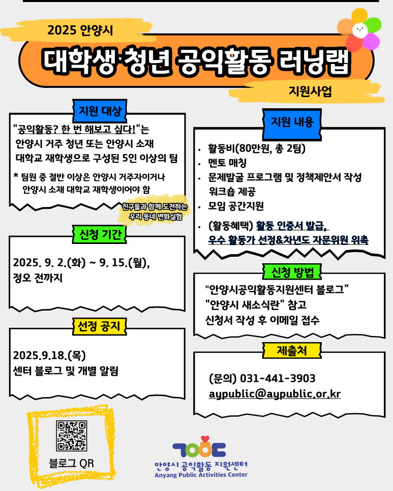 1. 사 업 명: 2025 안양시『대학생ˑ청년 공익활동 러닝랩』 지원사업