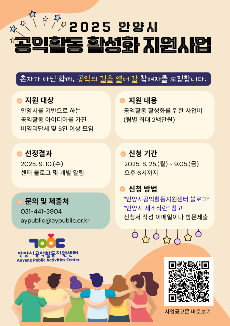 2025년 안양시 공익활동 활성화 지원사업-공고 (~ 9.05.마감)