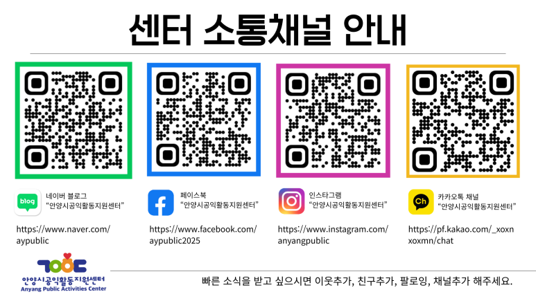 ● 카카오톡 채널: 카카오톡에서 "안양공익활동"검색 채널 추가!!